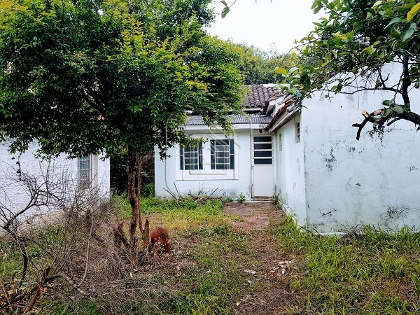 Casa de dois dormitórios, sala, cozinha, banheiro, garagem e pátio.