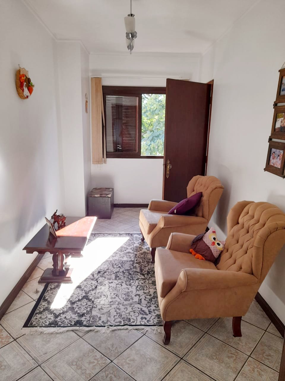 Sobrado comercial e residencial andar térreo comercial para cabelereiro e estéticas e afins, garagem andar superior com 3 dormitórios sendo 1 suíte banheiro social sala de jantar e estar com lareira sacada na frente e nos fundos a uma quadra da Av. Feitoria, rua aflautada frente leste. Pátio nos fundos. Piso laminado e frio.