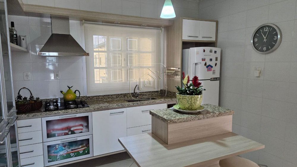 Excelente casa sobrado no bairro Pinheiros com 3 dormitórios sendo uma suíte, banheiro social, circulação com sacada e terraço em um dos dormitórios, sala de estar, lavabo, cozinha, garagem para 2 carros junto ao salão de festa com espaço gourmet, churrasqueira e área de serviço com armários e banheiro auxiliar, pátio arborizado. O piso porcelanato, aberturas de madeira pintadas, acabamento em gesso no no forro bem como madeira em toda a parte intima da casa.