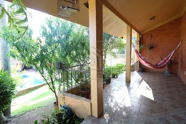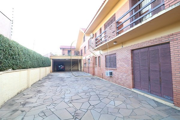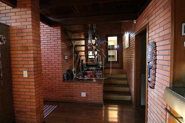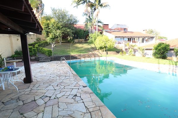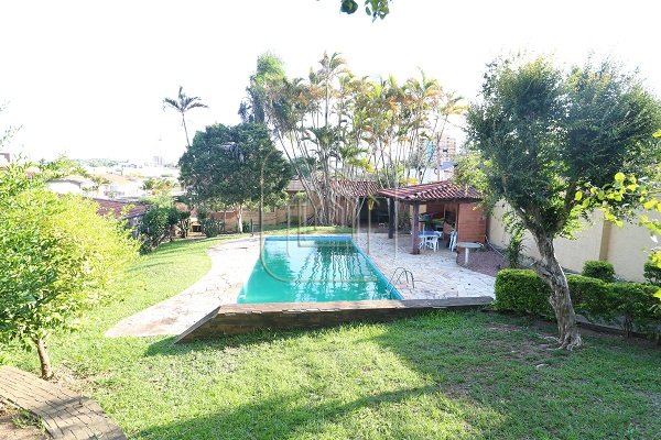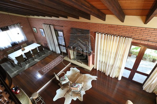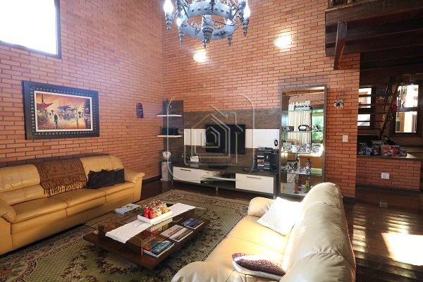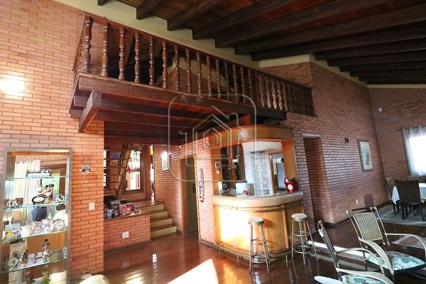 Excelente residência de 517m², com quatro dormitórios, sendo quatro suítes, escritório completo com banheiro e entrada individual, sala de estar e jantar, sala com lareira, sala de TV individual também com lareira, mesanino, bar, duas áreas de lazer separadas e envidraçadas, uma delas com churrasqueira, garagem para 08 carros lado a lado, terraço, duas sacadas, pátio amplo com piscina de 45m x 9m, quiosque com churrasqueira, além de outra casa completa na parte inferior.