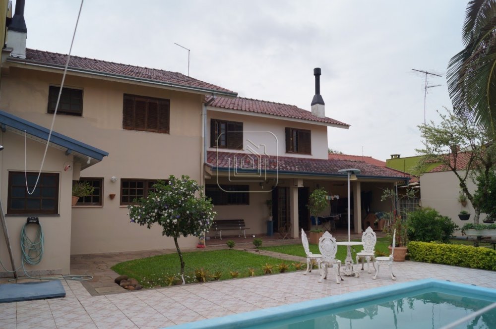 Casa sobrado, em Bairro nobre, de quatro dormitórios, sendo uma suíte com banheira,sala ampla de passagem e banheiro social, na parte superior. Na parte inferior, possui lavabo, gabinete, sala de estar com lareira, cozinha com canto Alemão, garagem para quatro carros, despensa, piscina, canil, pomar e mais um banheiro nos fundos. Pátio com cerca elétrica.